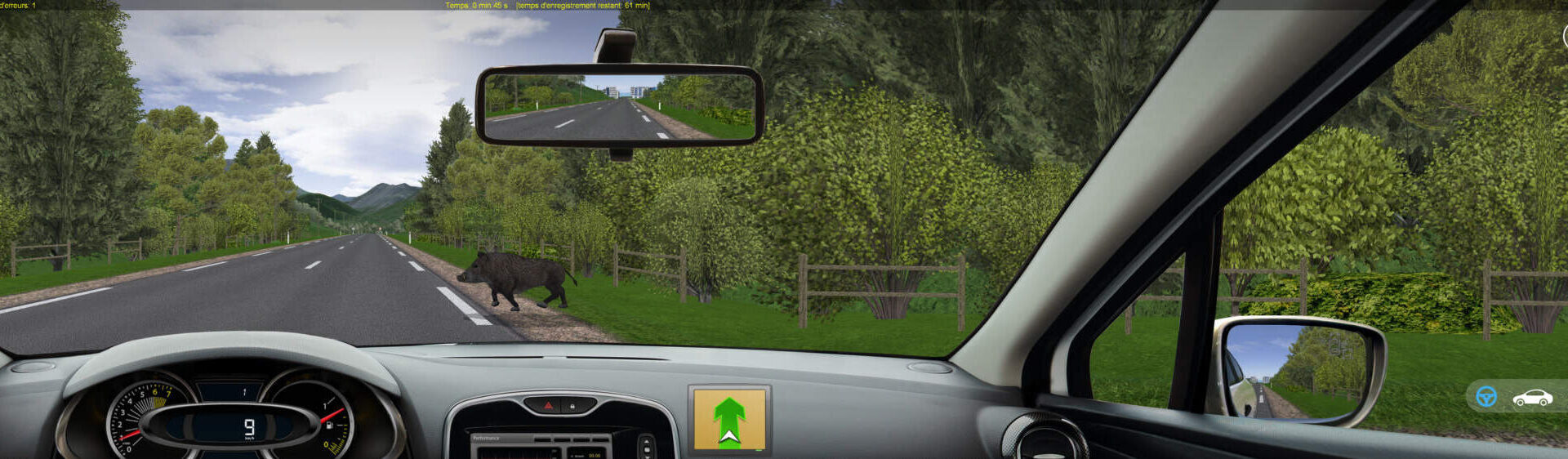 Plongez les titulaires du permis dans des situations de conduite exceptionnelles telles que la traversée d’animaux sauvages sur une route. Faites leurs découvrir les nouveaux outils d’aide à la conduite.